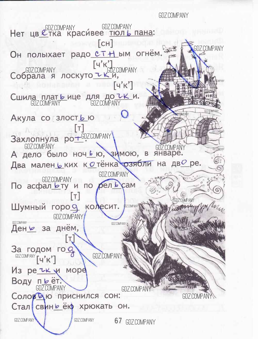 Здесь готовые ответы по Русскому языку за 2 (второй) класс от Байкова, Малаховская, Гольфман Тетрадь для самостоятельной работы   (издательство: Академкнига от 2017 г.) № 67