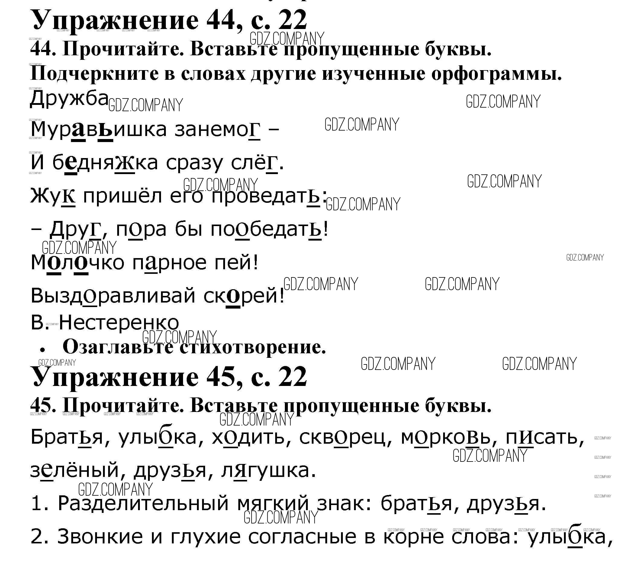 Здесь готовые ответы по Русскому языку за 2 (второй) класс от Канакина Рабочая тетрадь Школа России (издательство: Просвещение от 2012 г.) № 22