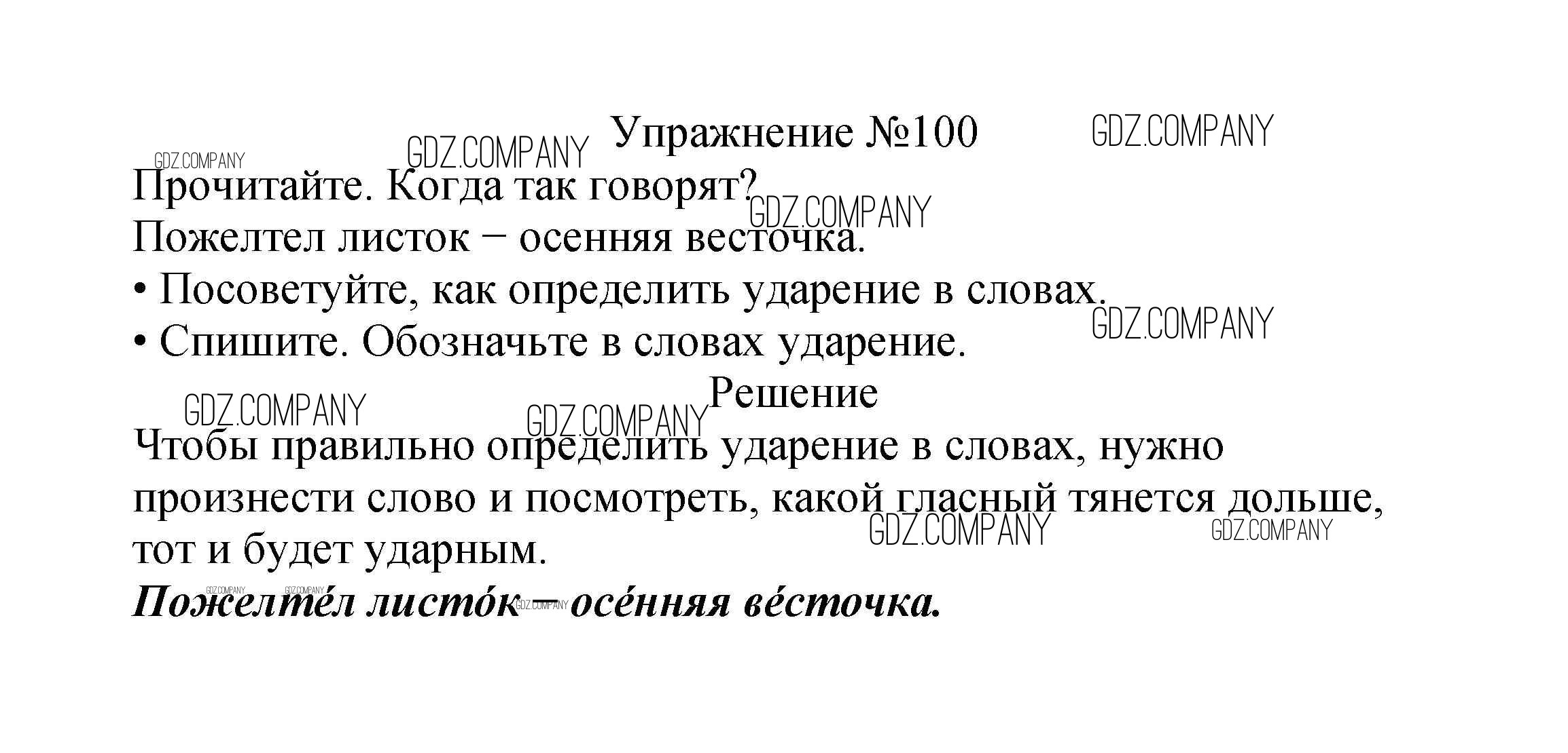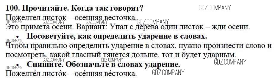 Здесь готовые ответы по Русскому языку за 2 (второй) класс от Канакина, Горецкий Учебник Школа России (издательство: Просвещение от 2013 г.) № 100