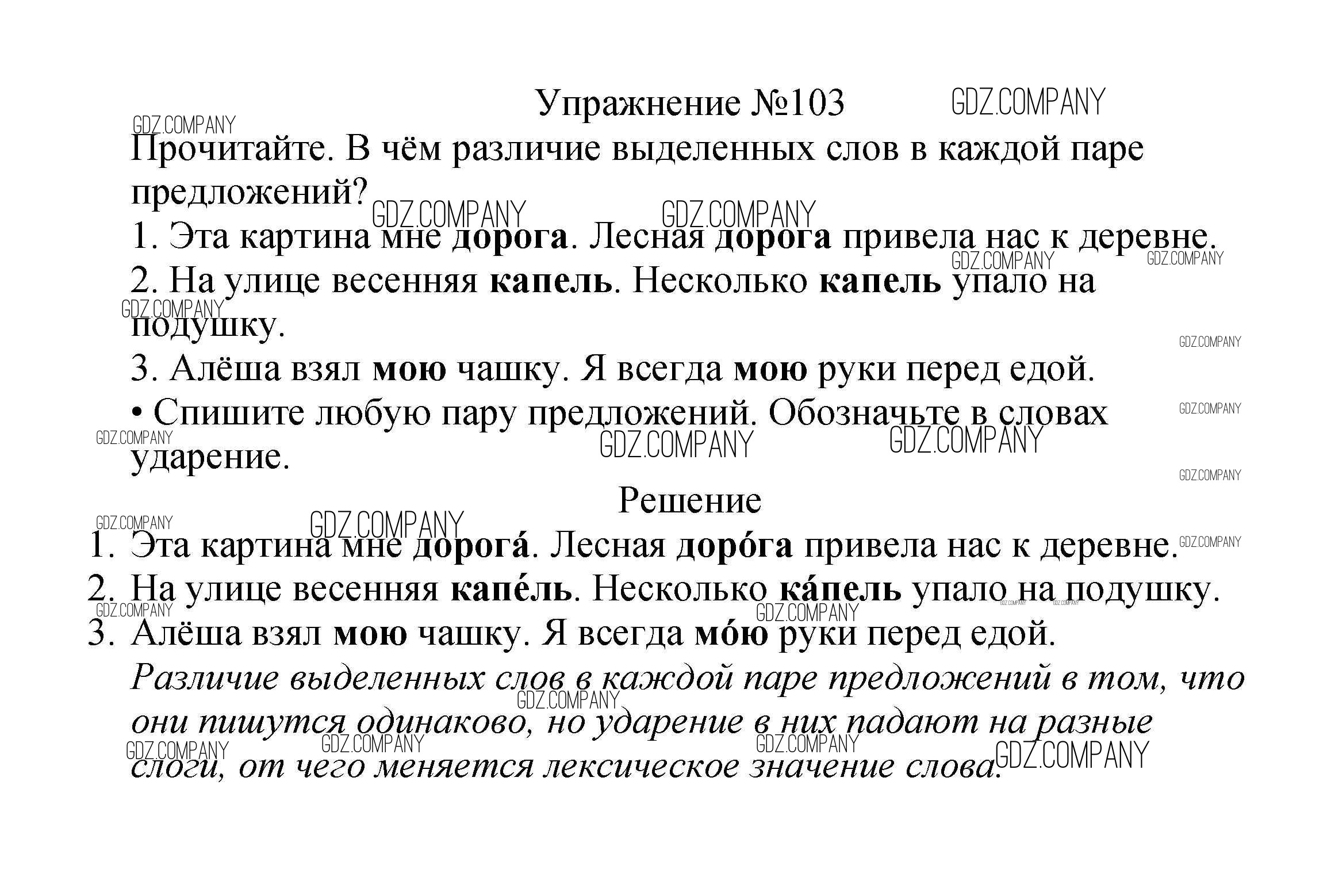 Здесь готовые ответы по Русскому языку за 2 (второй) класс от Канакина, Горецкий Учебник Школа России (издательство: Просвещение от 2013 г.) № 103