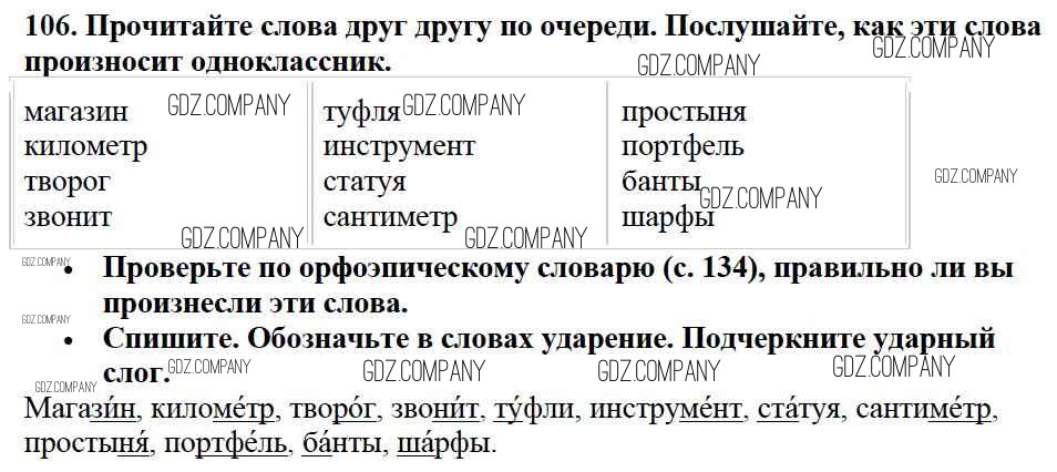Здесь готовые ответы по Русскому языку за 2 (второй) класс от Канакина, Горецкий Учебник Школа России (издательство: Просвещение от 2013 г.) № 106