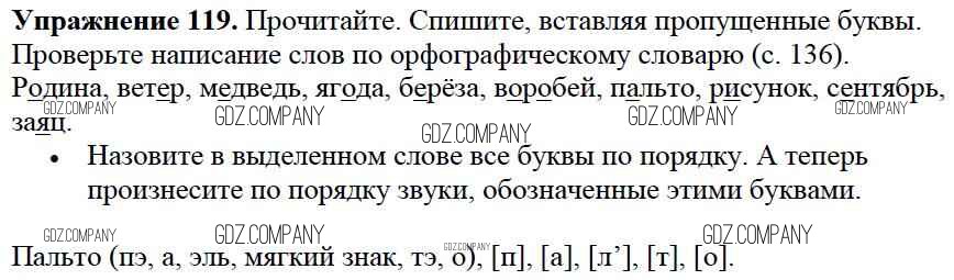 Здесь готовые ответы по Русскому языку за 2 (второй) класс от Канакина, Горецкий Учебник Школа России (издательство: Просвещение от 2013 г.) № 119