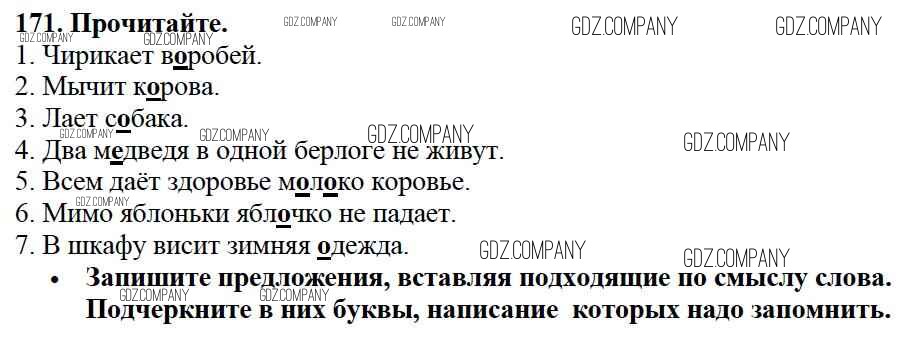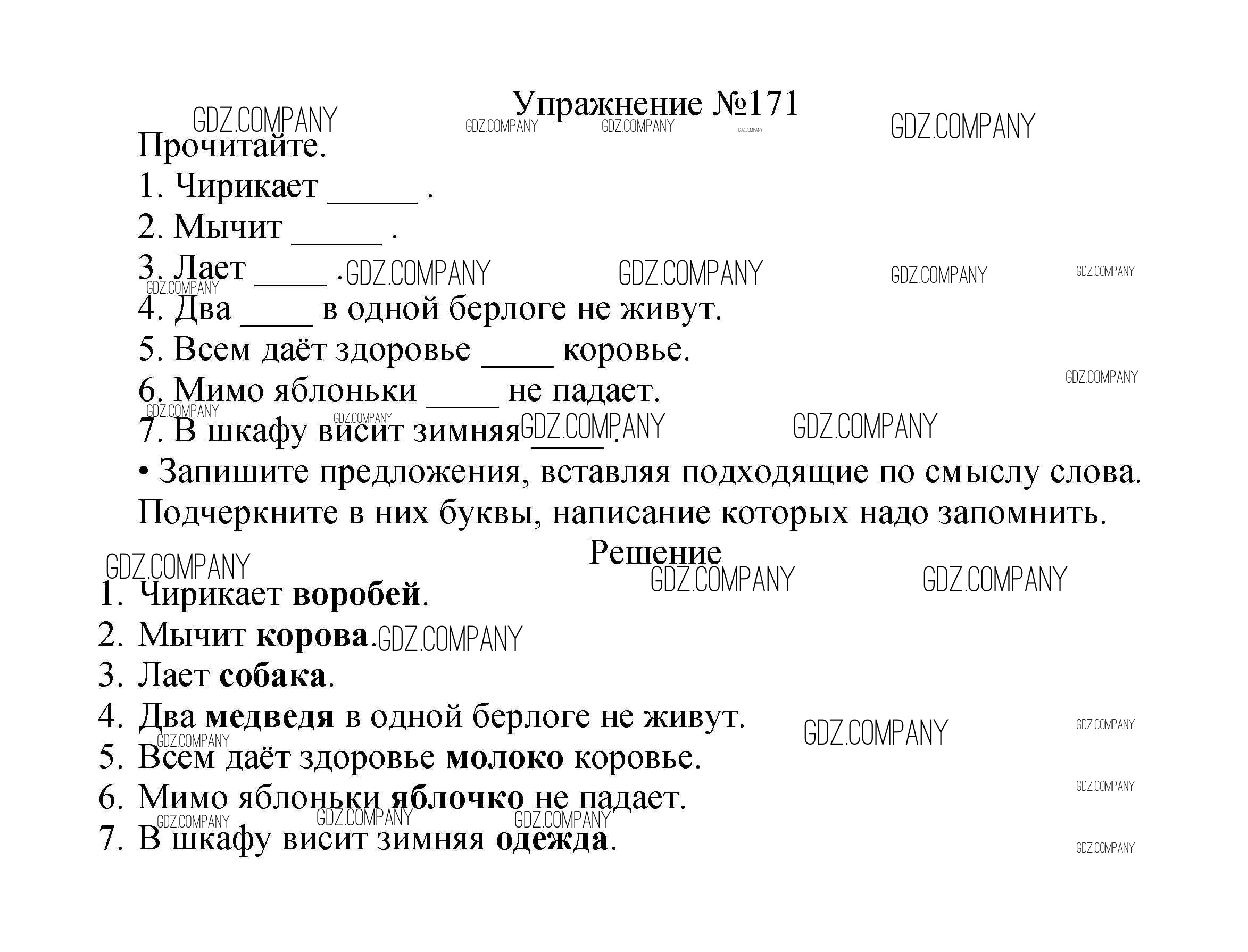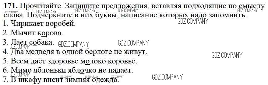 Здесь готовые ответы по Русскому языку за 2 (второй) класс от Канакина, Горецкий Учебник Школа России (издательство: Просвещение от 2013 г.) № 171