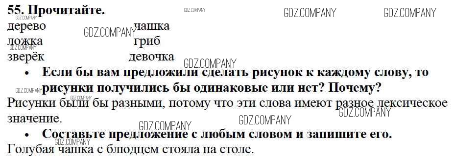 Здесь готовые ответы по Русскому языку за 2 (второй) класс от Канакина, Горецкий Учебник Школа России (издательство: Просвещение от 2013 г.) № 55