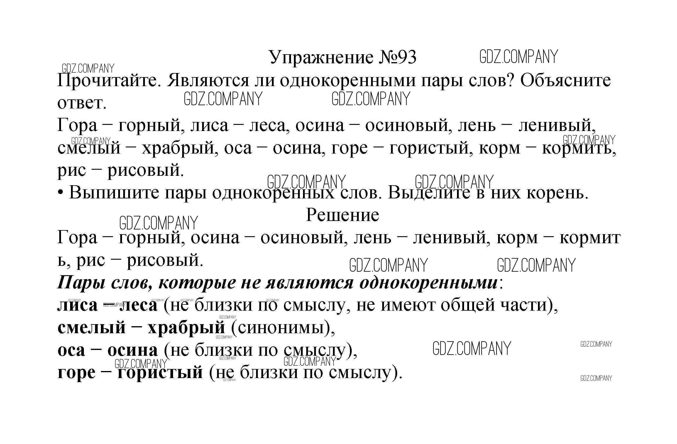Здесь готовые ответы по Русскому языку за 2 (второй) класс от Канакина, Горецкий Учебник Школа России (издательство: Просвещение от 2013 г.) № 93