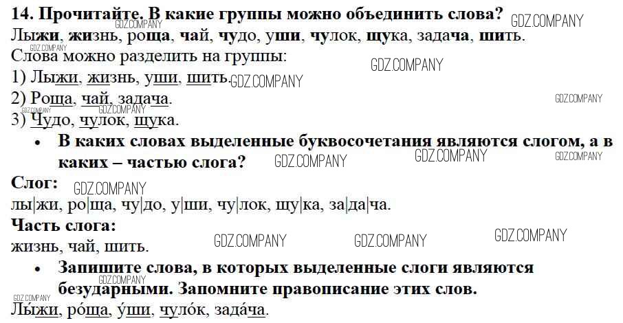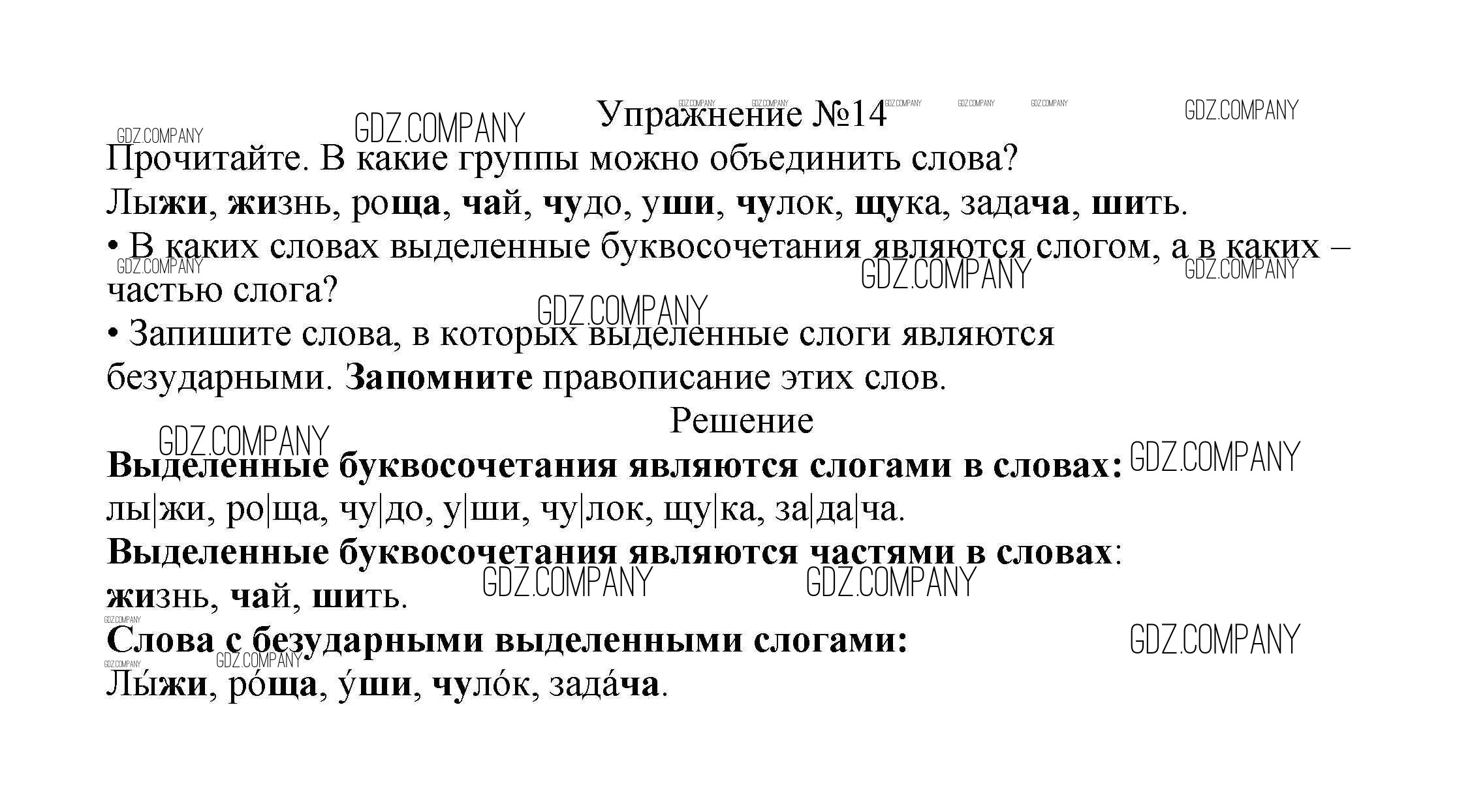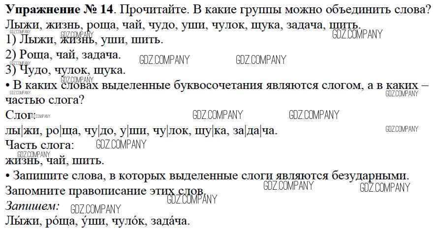 Здесь готовые ответы по Русскому языку за 2 (второй) класс от Канакина, Горецкий Учебник Школа России (издательство: Просвещение от 2013 г.) № 14