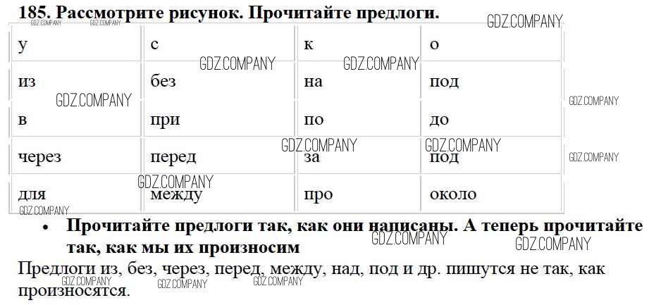 Здесь готовые ответы по Русскому языку за 2 (второй) класс от Канакина, Горецкий Учебник Школа России (издательство: Просвещение от 2013 г.) № 185