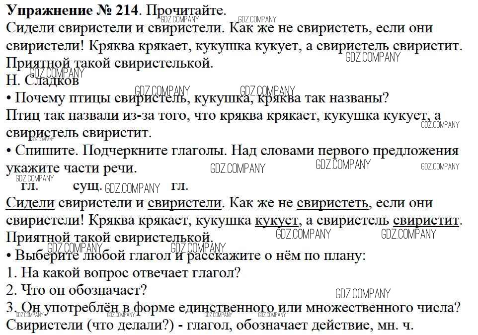 Здесь готовые ответы по Русскому языку за 2 (второй) класс от Канакина, Горецкий Учебник Школа России (издательство: Просвещение от 2013 г.) № 214