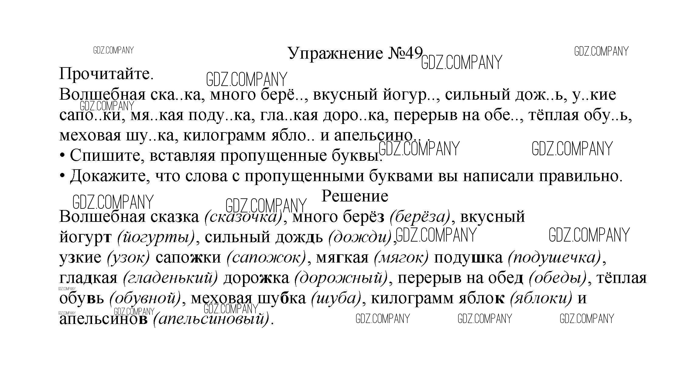 Здесь готовые ответы по Русскому языку за 2 (второй) класс от Канакина, Горецкий Учебник Школа России (издательство: Просвещение от 2013 г.) № 49