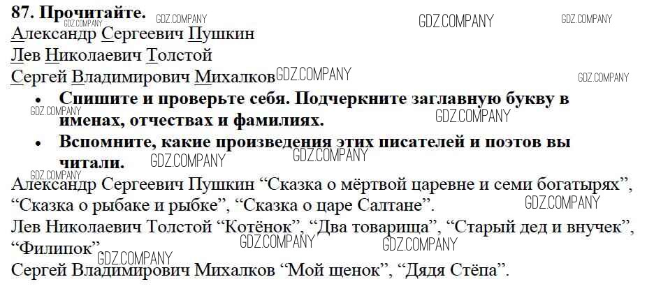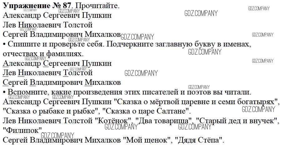 Здесь готовые ответы по Русскому языку за 2 (второй) класс от Канакина, Горецкий Учебник Школа России (издательство: Просвещение от 2013 г.) № 87