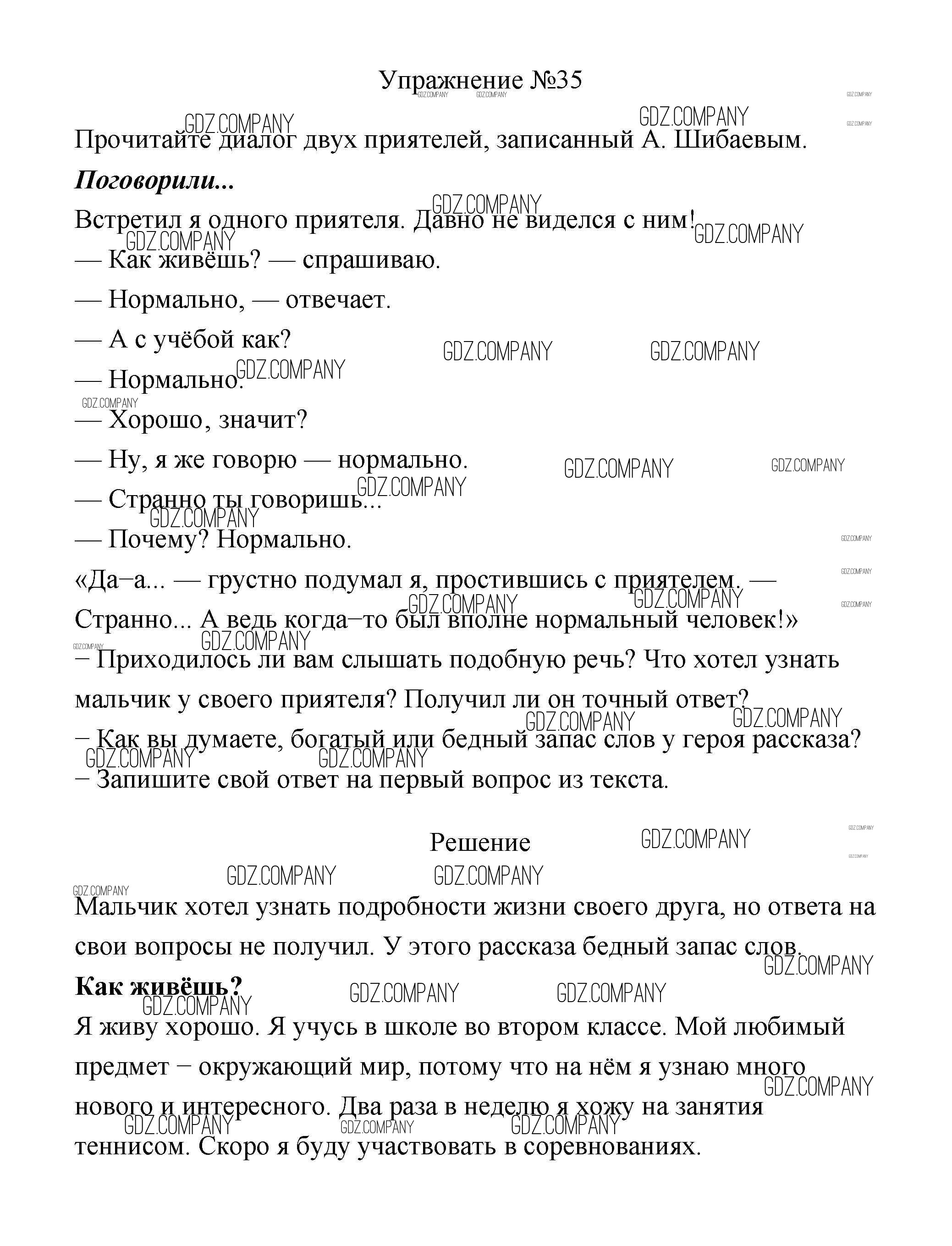 Здесь готовые ответы по Русскому языку за 2 (второй) класс от Климанова, Бабушкина Учебник Перспектива  (издательство: Просвещение от 2015 г.) № 35
