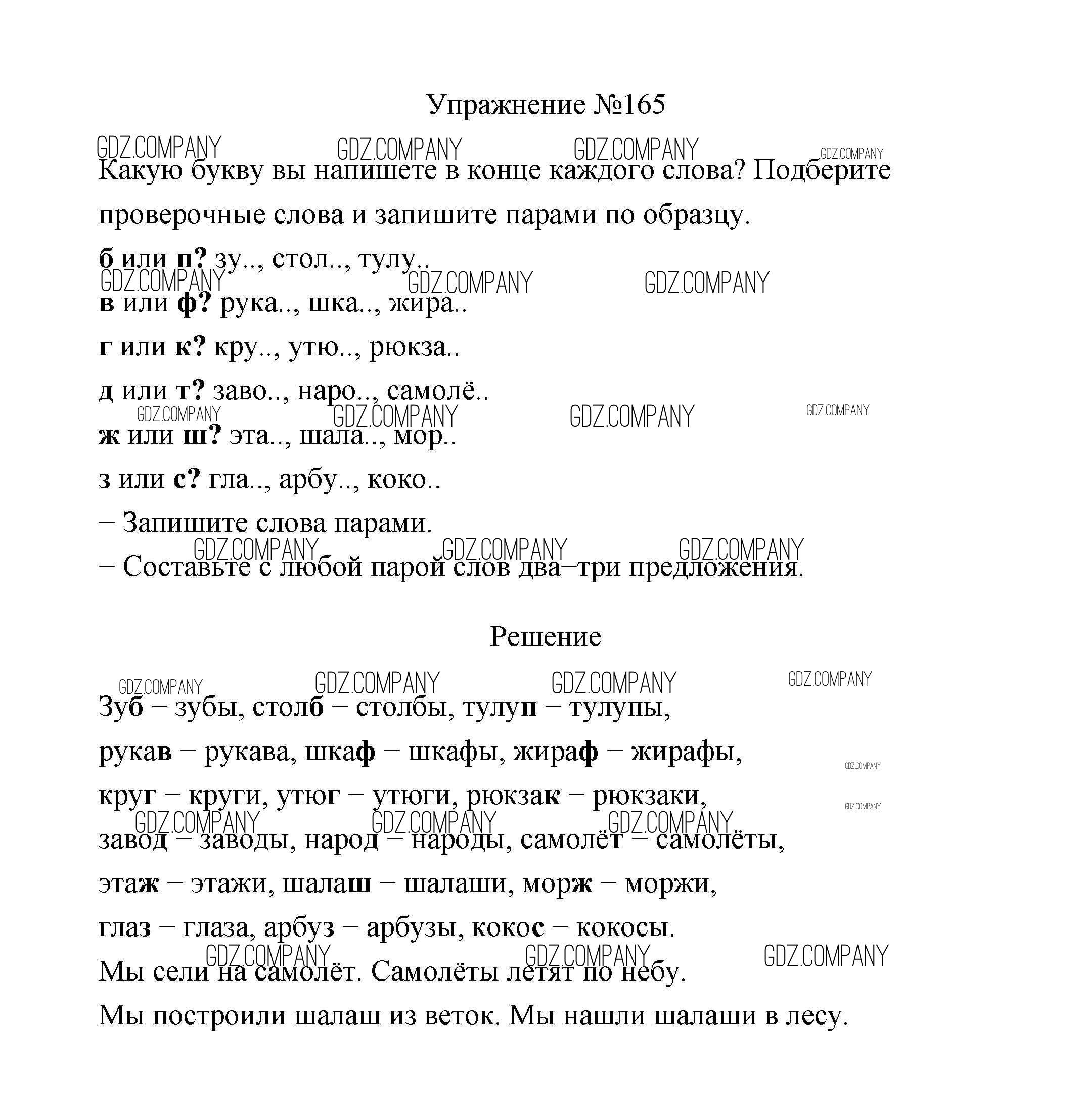 Здесь готовые ответы по Русскому языку за 2 (второй) класс от Климанова, Бабушкина Учебник Перспектива (издательство: Просвещение от 2015 г.) № 165