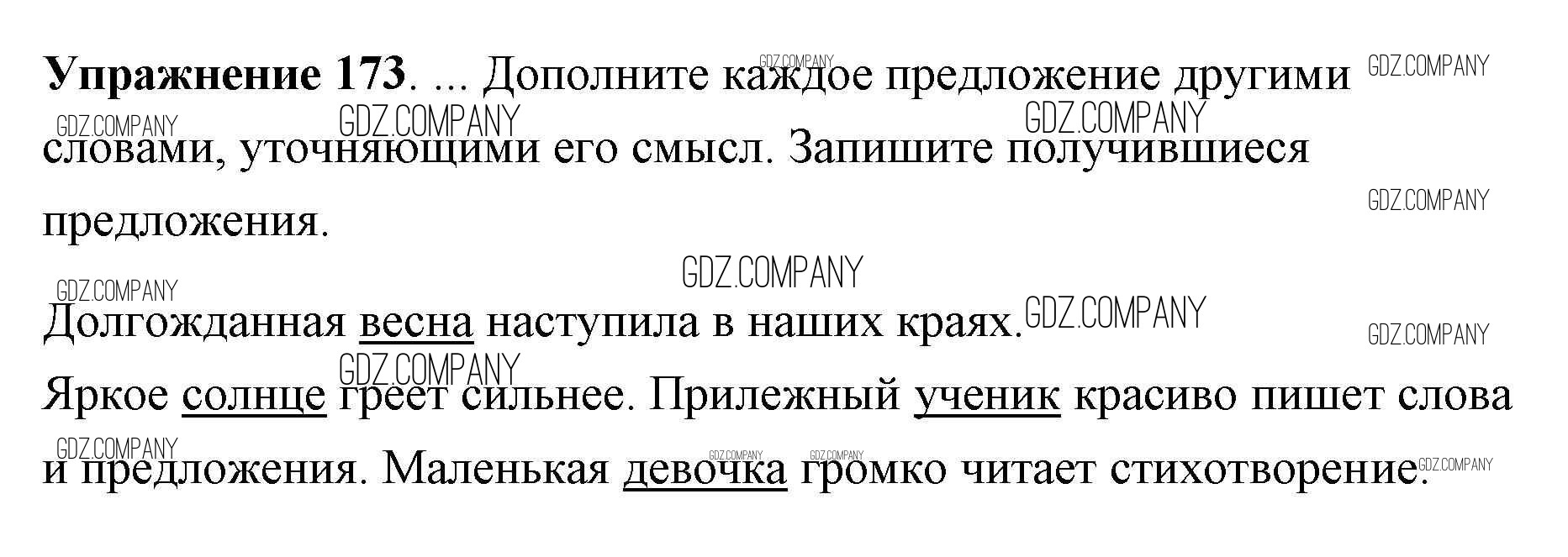 Здесь готовые ответы по Русскому языку за 2 (второй) класс от Климанова, Бабушкина Учебник Перспектива  (издательство: Просвещение от 2015 г.) № 173