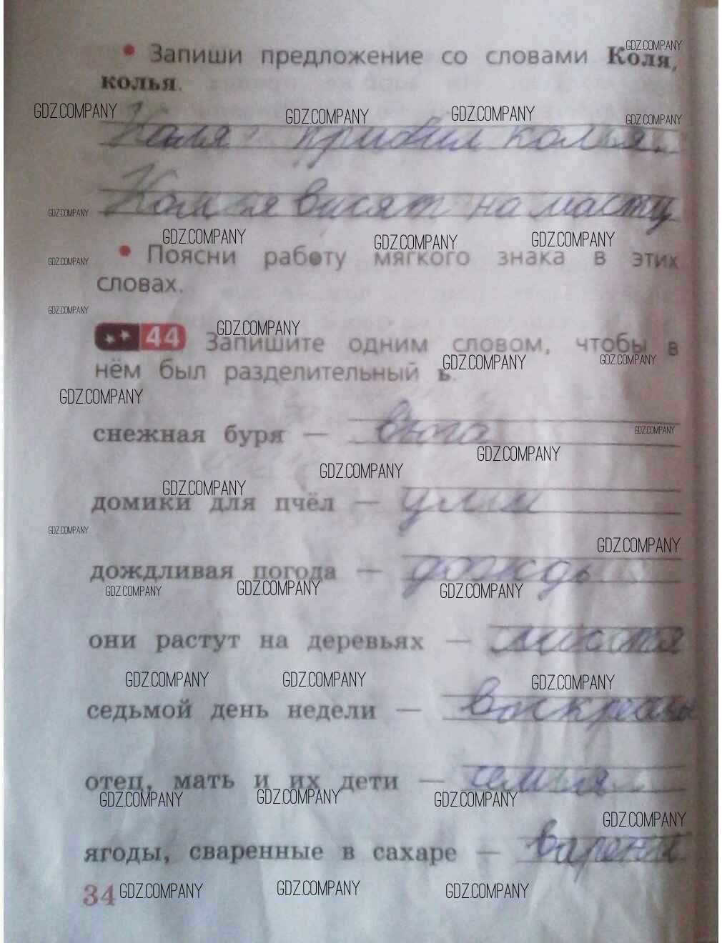Здесь готовые ответы по Русскому языку за 2 (второй) класс от Песняева, Анащенкова Рабочая тетрадь (издательство: Просвещение от 2020 г.) № 34
