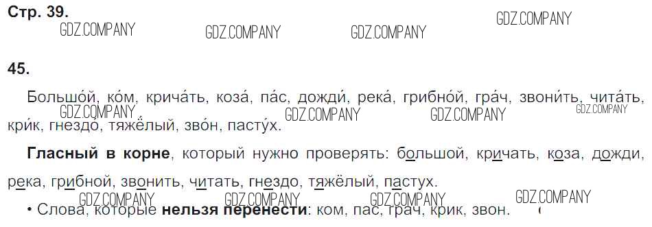 Здесь готовые ответы по Русскому языку за 2 (второй) класс от Песняева, Анащенкова Рабочая тетрадь (издательство: Просвещение от 2020 г.) № 39