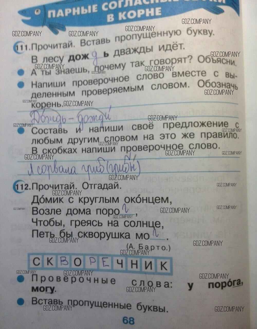 Здесь готовые ответы по Русскому языку за 2 (второй) класс от Рамзаева, Савинкина Тетрадь для упражнений Ритм (издательство: Дрофа от 2018 г.) № 68