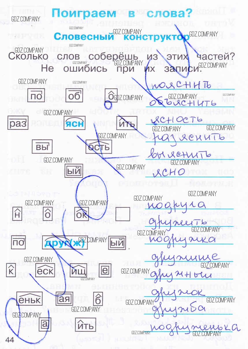 Здесь готовые ответы по Русскому языку за 2 (второй) класс от Соловейчик, Кузьменко Рабочая тетрадь Гармония (издательство: Ассоциация 21 век от 2012 г.) № 44