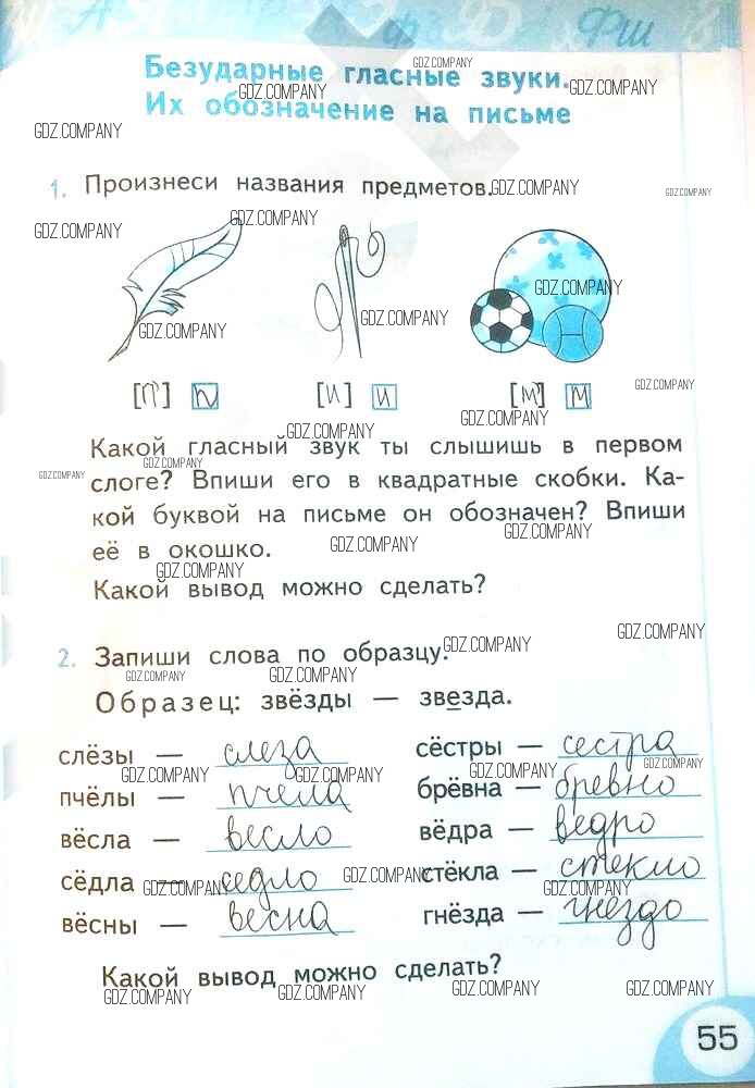 Здесь готовые ответы по Русскому языку за 2 (второй) класс от Тихомирова Рабочая тетрадь УМК (издательство: Экзамен от 2019 г.) № 55