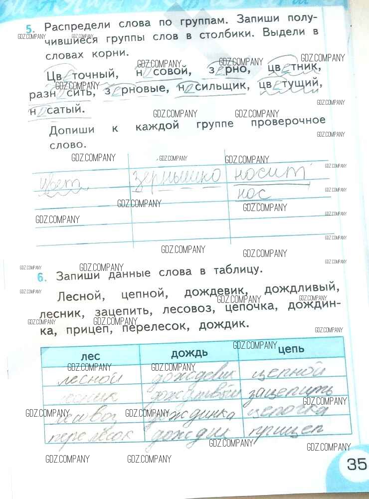 Здесь готовые ответы по Русскому языку за 2 (второй) класс от Тихомирова Рабочая тетрадь УМК (издательство: Экзамен от 2019 г.) № 35