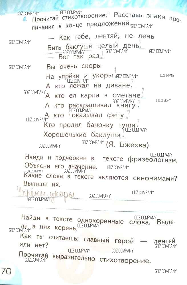 Здесь готовые ответы по Русскому языку за 2 (второй) класс от Тихомирова Рабочая тетрадь УМК (издательство: Экзамен от 2019 г.) № 70