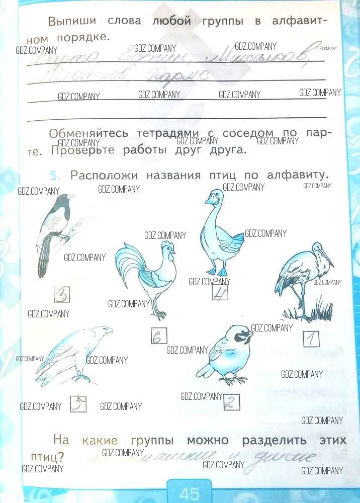 Здесь готовые ответы по Русскому языку за 2 (второй) класс от Тихомирова Рабочая тетрадь УМК (издательство: Экзамен от 2018 г.) № 45