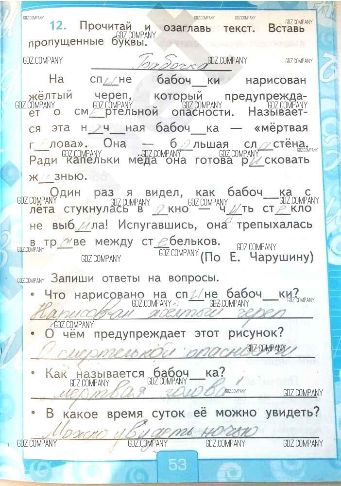 Здесь готовые ответы по Русскому языку за 2 (второй) класс от Тихомирова Рабочая тетрадь УМК (издательство: Экзамен от 2018 г.) № 53