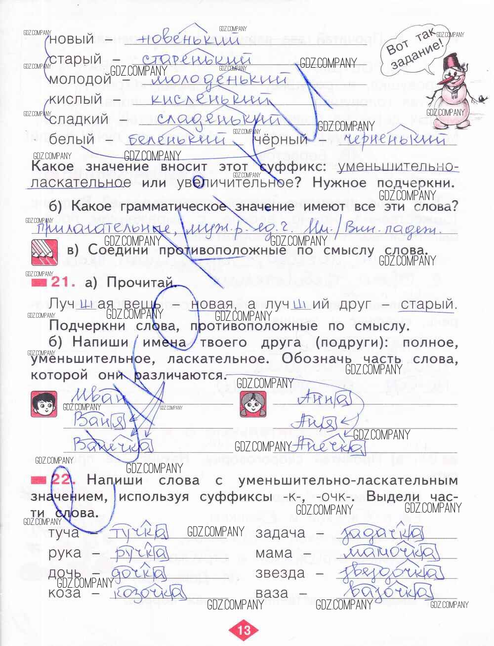 Здесь готовые ответы по Русскому языку за 2 (второй) класс от Яковлева Рабочая тетрадь (издательство: Фёдоров от 2015 г.) № 13