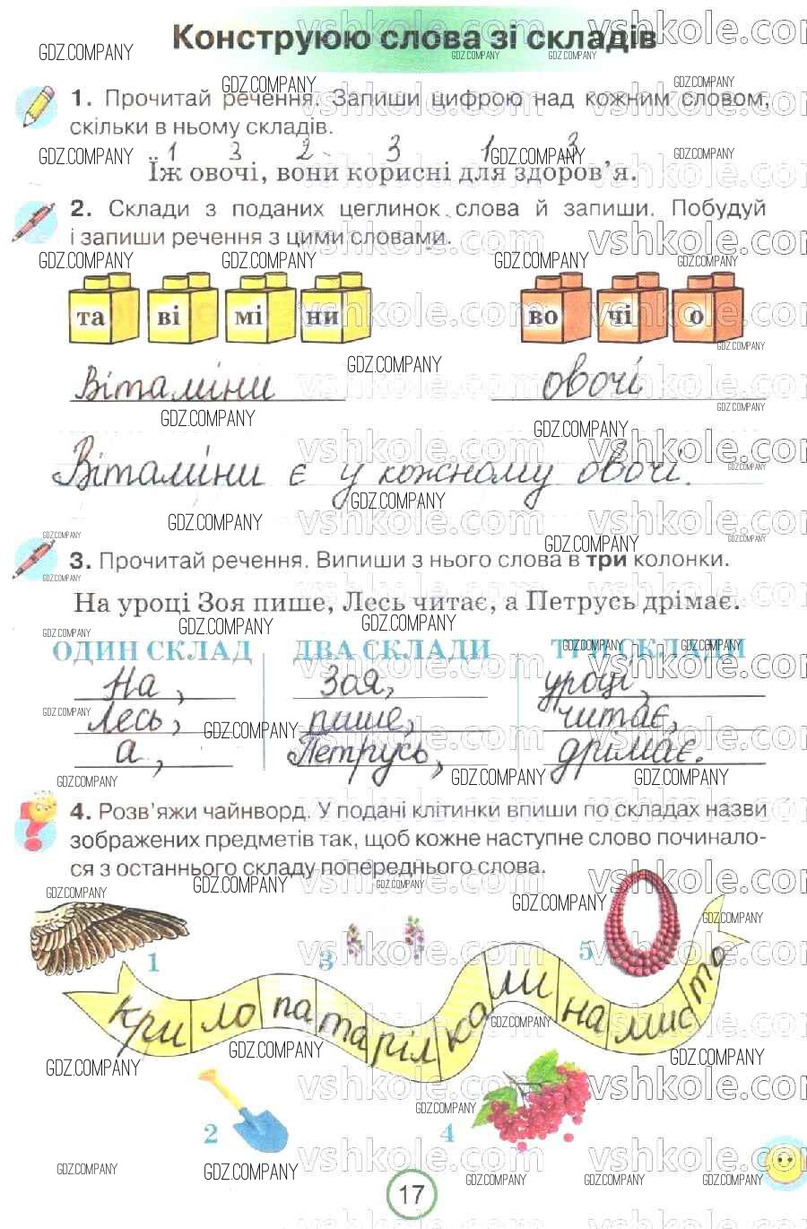 Здесь готовые ответы по Украинскому языку за 2 (второй) класс от Пономарева Рабочая тетрадь (издательство: Орiон от 2019 г.) № 17