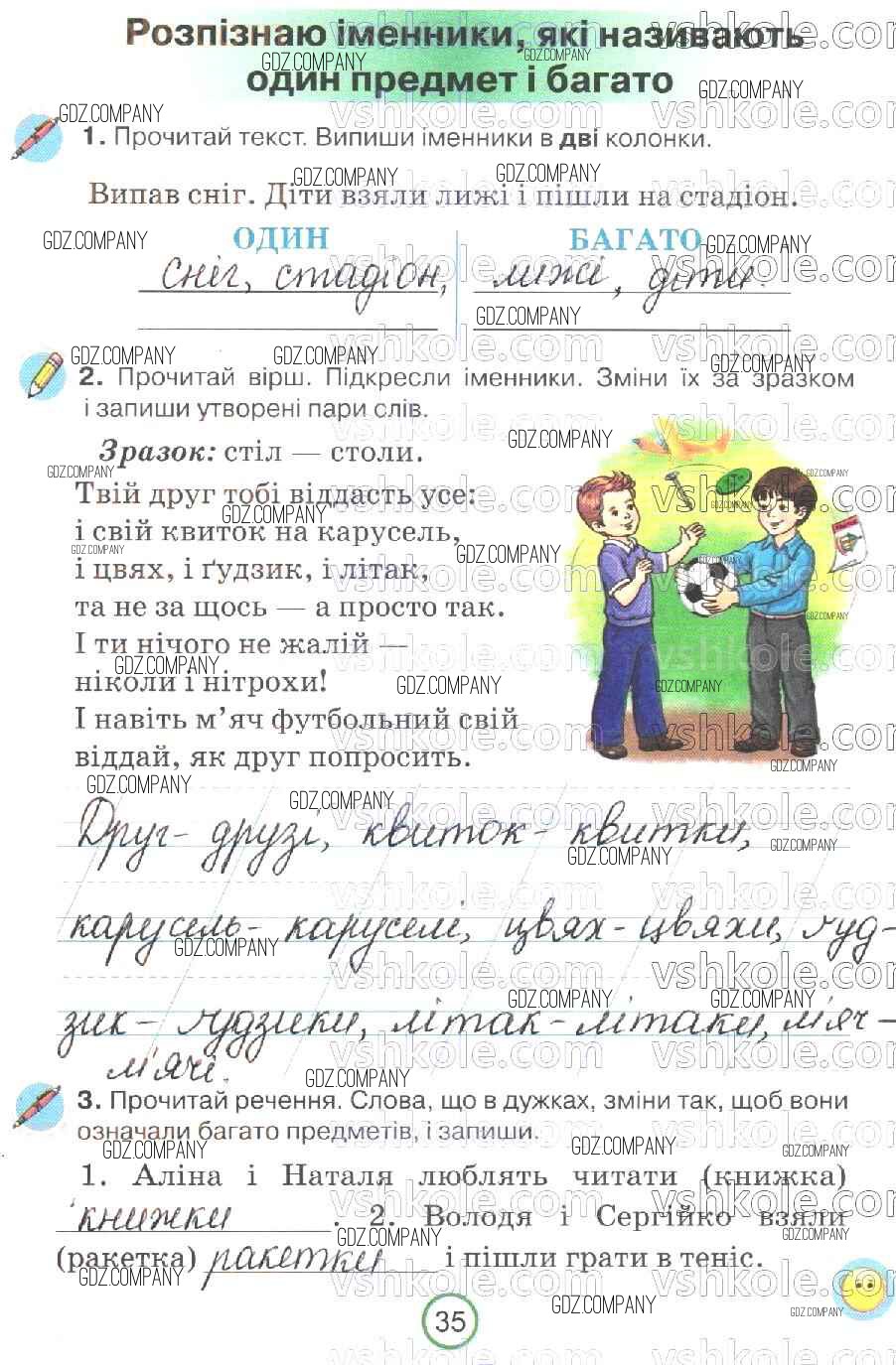 Здесь готовые ответы по Украинскому языку за 2 (второй) класс от Пономарева Рабочая тетрадь (издательство: Орiон от 2019 г.) № 35