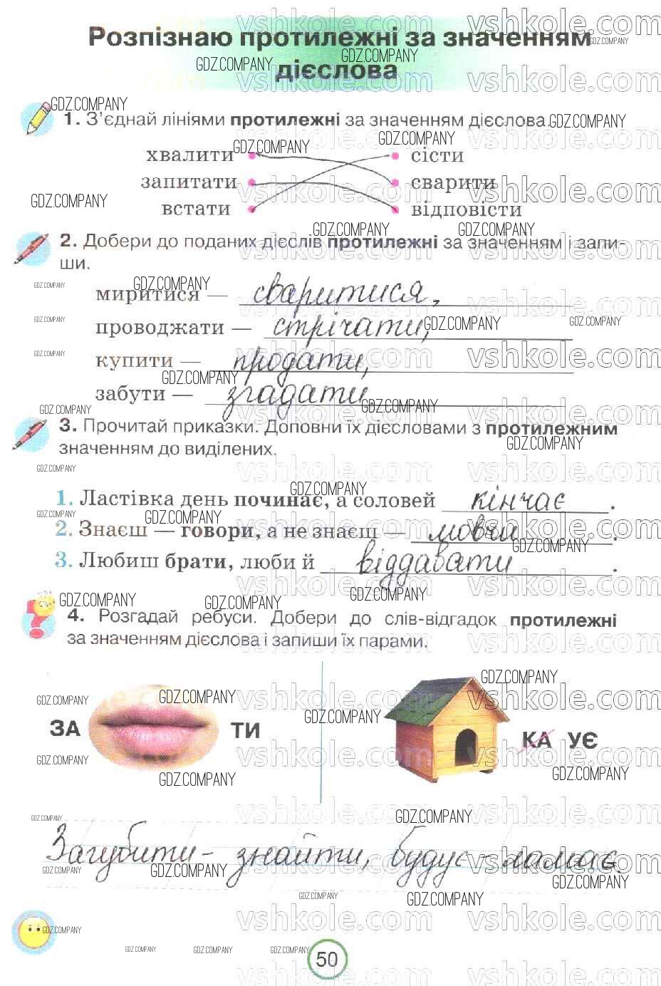 Здесь готовые ответы по Украинскому языку за 2 (второй) класс от Пономарева Рабочая тетрадь (издательство: Орiон от 2019 г.) № 50