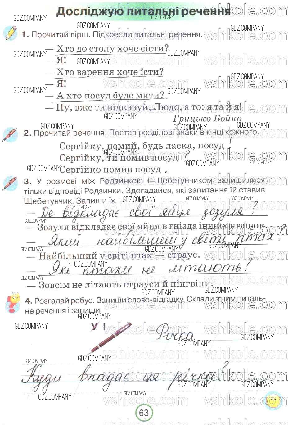 Здесь готовые ответы по Украинскому языку за 2 (второй) класс от Пономарева Рабочая тетрадь (издательство: Орiон от 2019 г.) № 63