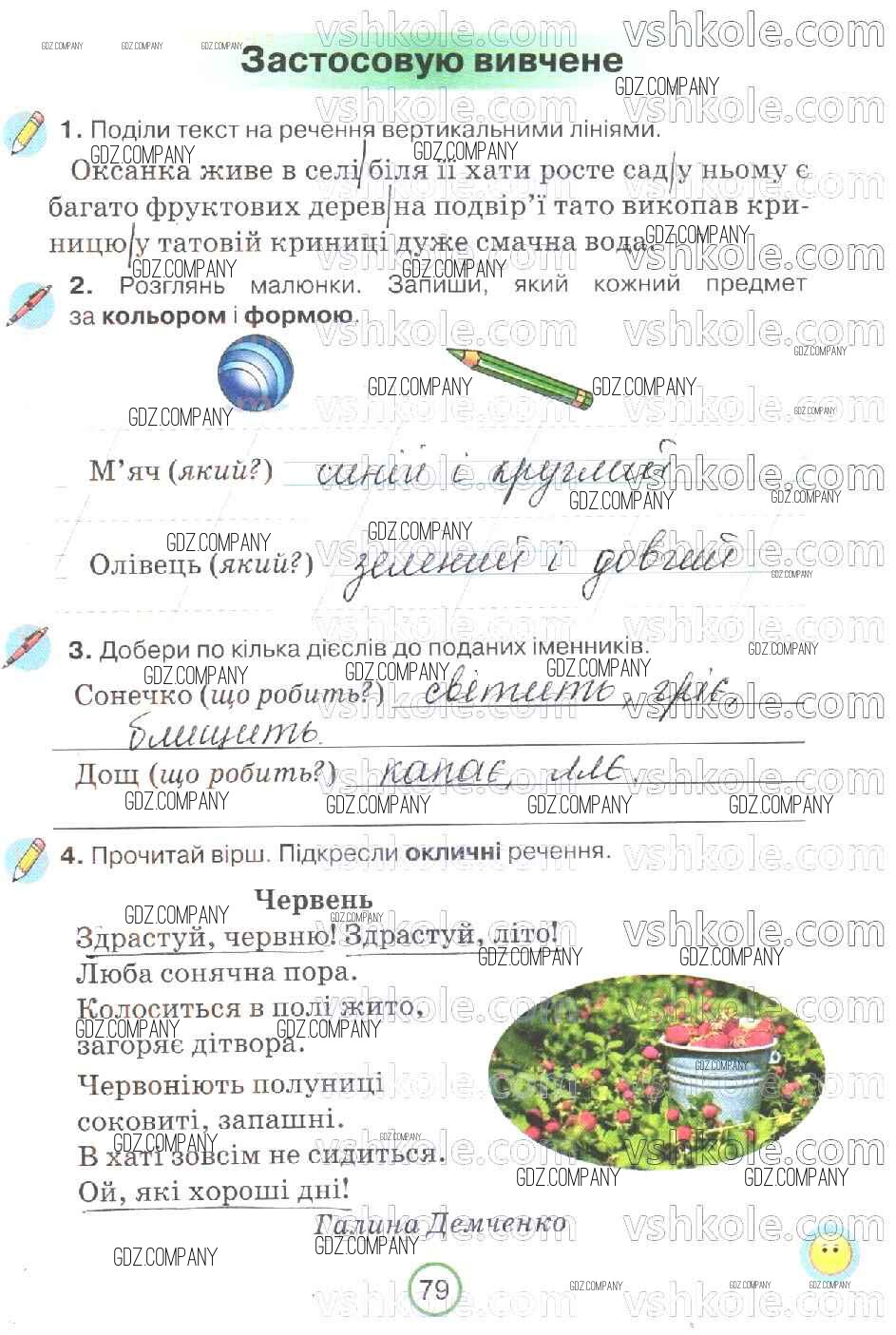Здесь готовые ответы по Украинскому языку за 2 (второй) класс от Пономарева Рабочая тетрадь (издательство: Орiон от 2019 г.) № 79