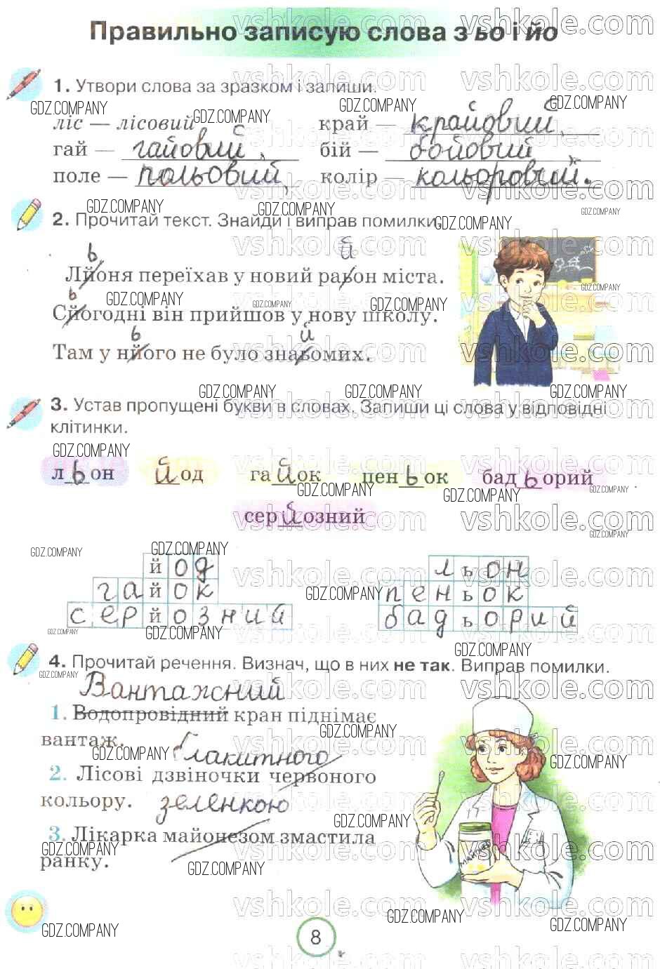 Здесь готовые ответы по Украинскому языку за 2 (второй) класс от Пономарева Рабочая тетрадь (издательство: Орiон от 2019 г.) № 8