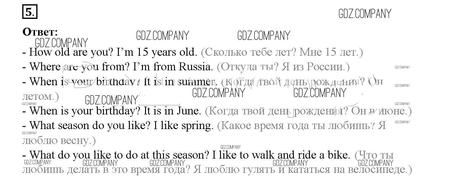 Здесь готовые ответы по Английскому языку за 3 (третий) класс от Афанасьева, Михеева Учебник Rainbow (издательство: Дрофа от 2015 г.) № 5