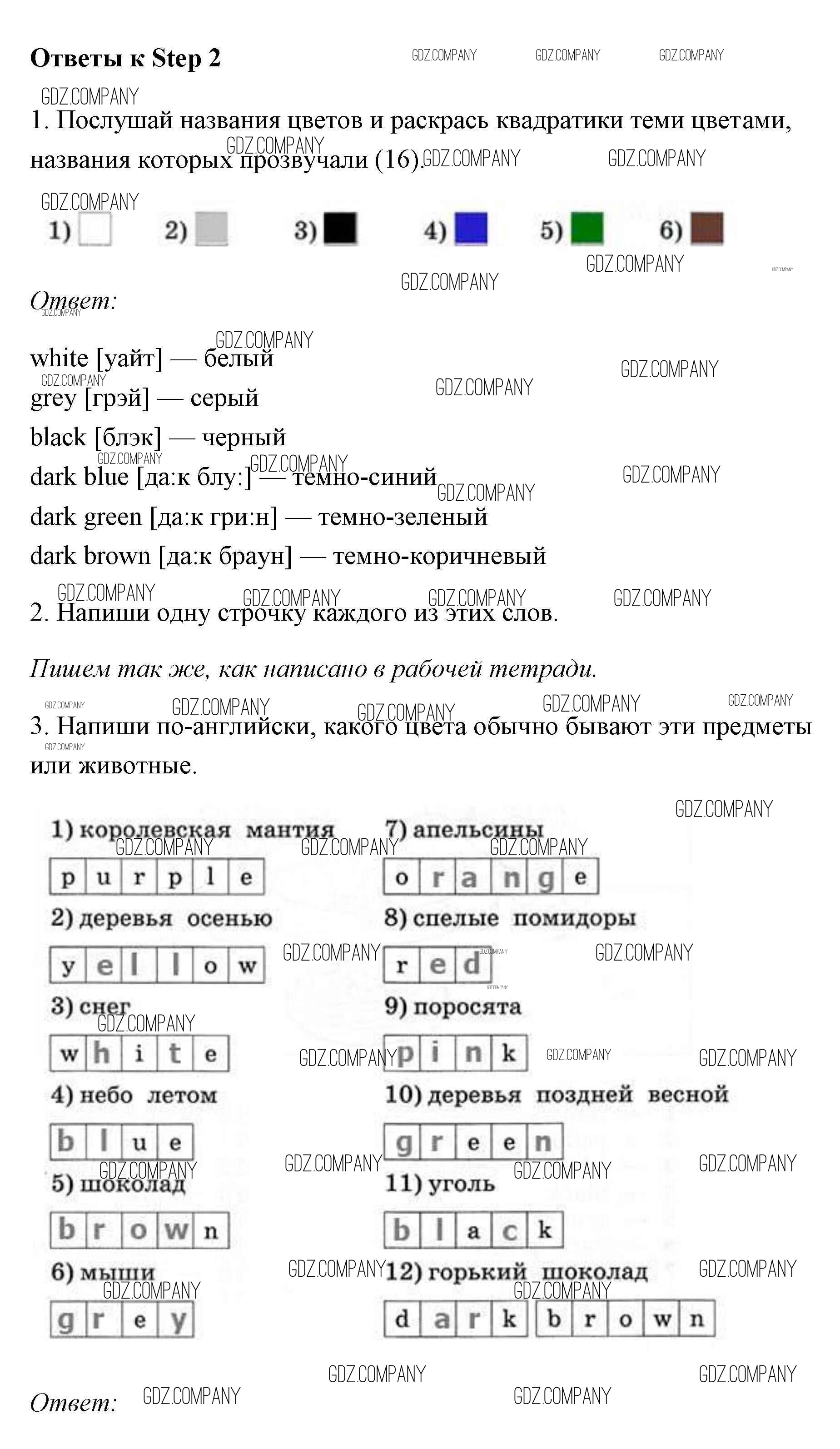 Здесь готовые ответы по Английскому языку за 3 (третий) класс от Афанасьева, Михеева Рабочая тетрадь Rainbow (издательство: Дрофа от 2015 г.) № Step 2