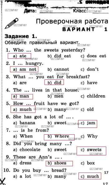 Здесь готовые ответы по Английскому языку за 3 (третий) класс от Барашкова Проверочные работы УМК (издательство: Экзамен от 2016 г.) № 17