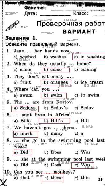Здесь готовые ответы по Английскому языку за 3 (третий) класс от Барашкова Проверочные работы УМК (издательство: Экзамен от 2016 г.) № 29
