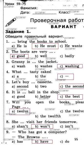Здесь готовые ответы по Английскому языку за 3 (третий) класс от Барашкова Проверочные работы УМК (издательство: Экзамен от 2016 г.) № 55