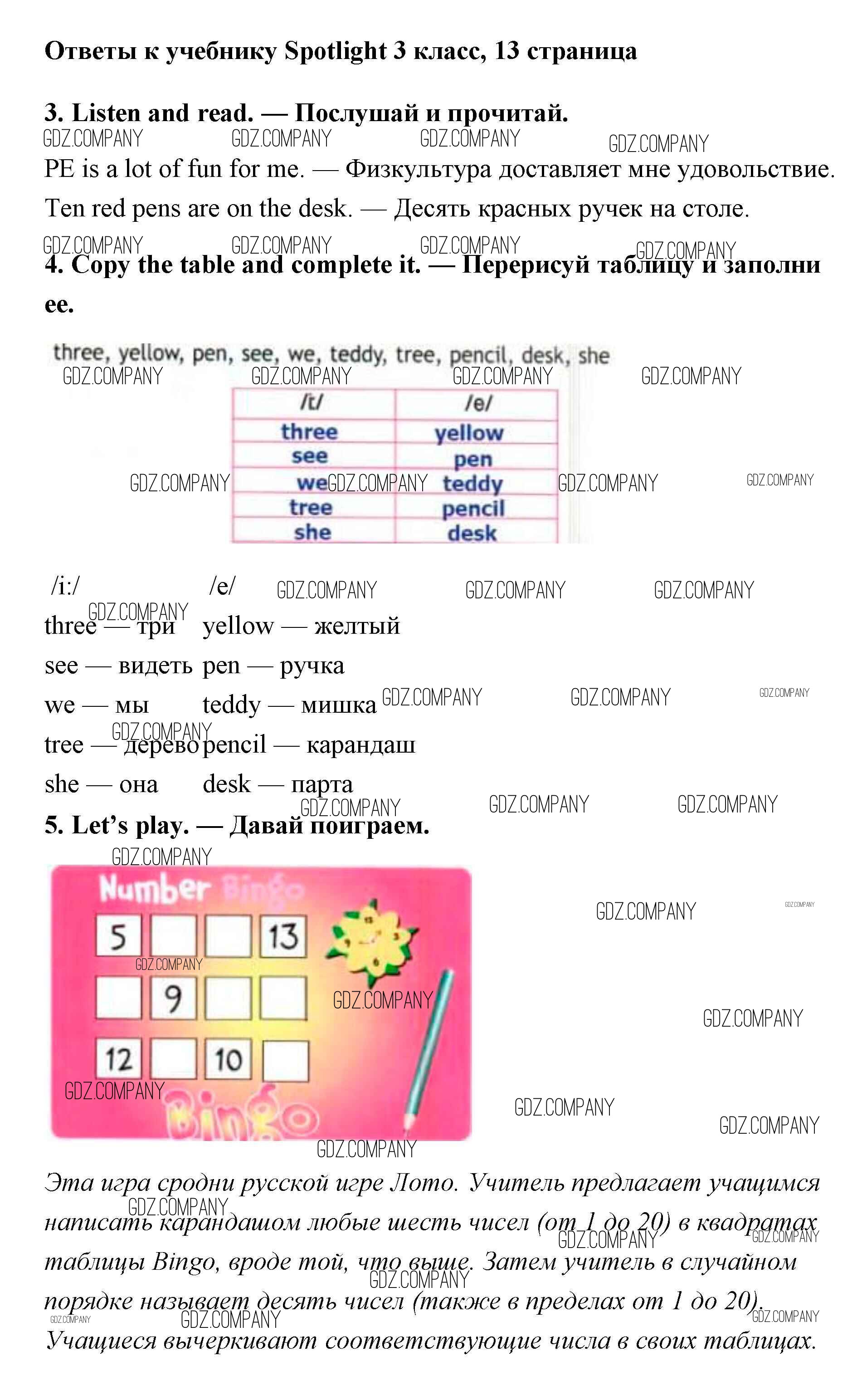 Здесь готовые ответы по Английскому языку за 3 (третий) класс от Быкова, Эванс, Дули, Поспелова Учебник Spotlight (издательство: Просвещение от 2015 г.) № 13