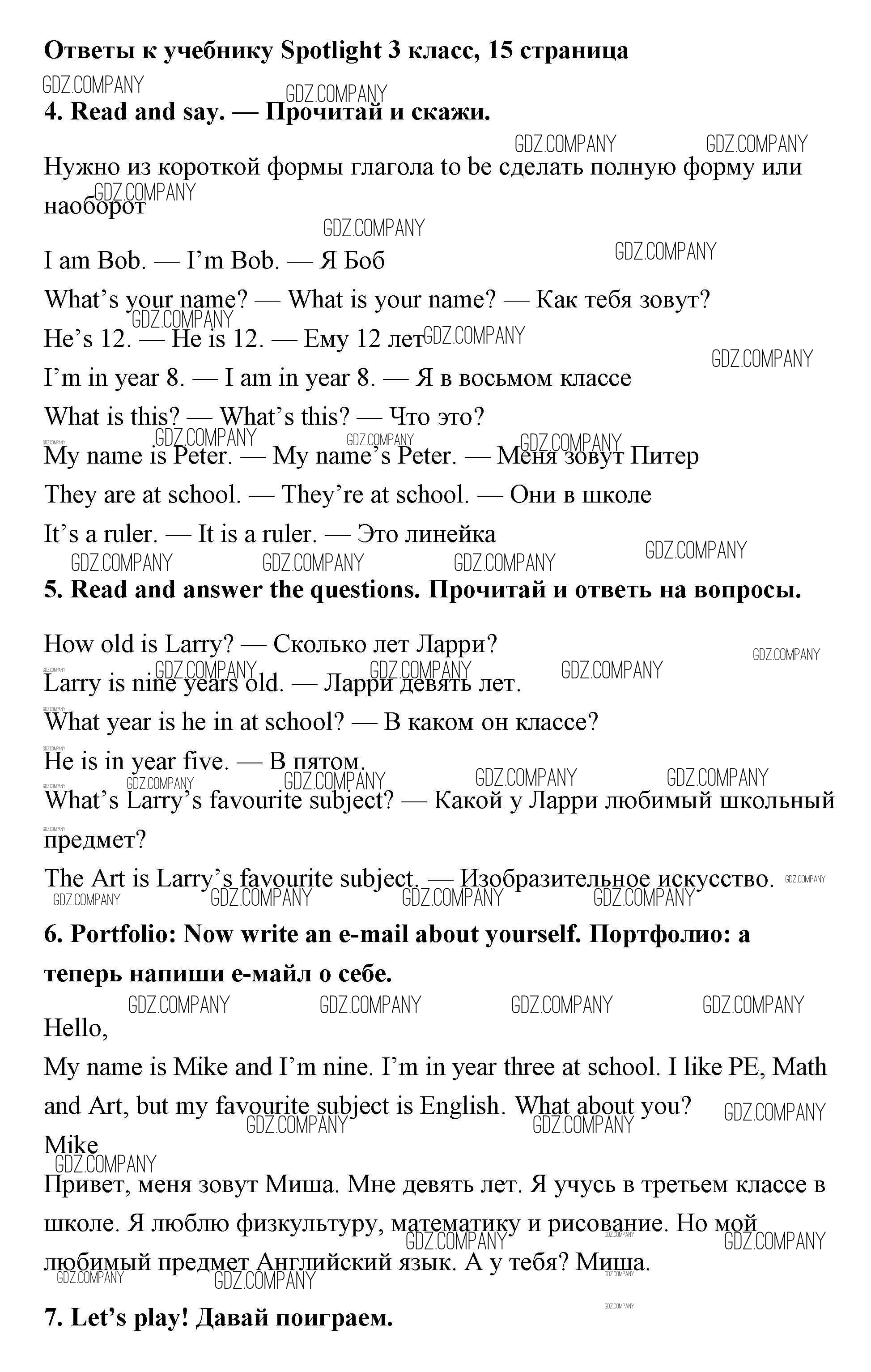 Здесь готовые ответы по Английскому языку за 3 (третий) класс от Быкова, Эванс, Дули, Поспелова Учебник Spotlight (издательство: Просвещение от 2015 г.) № 15