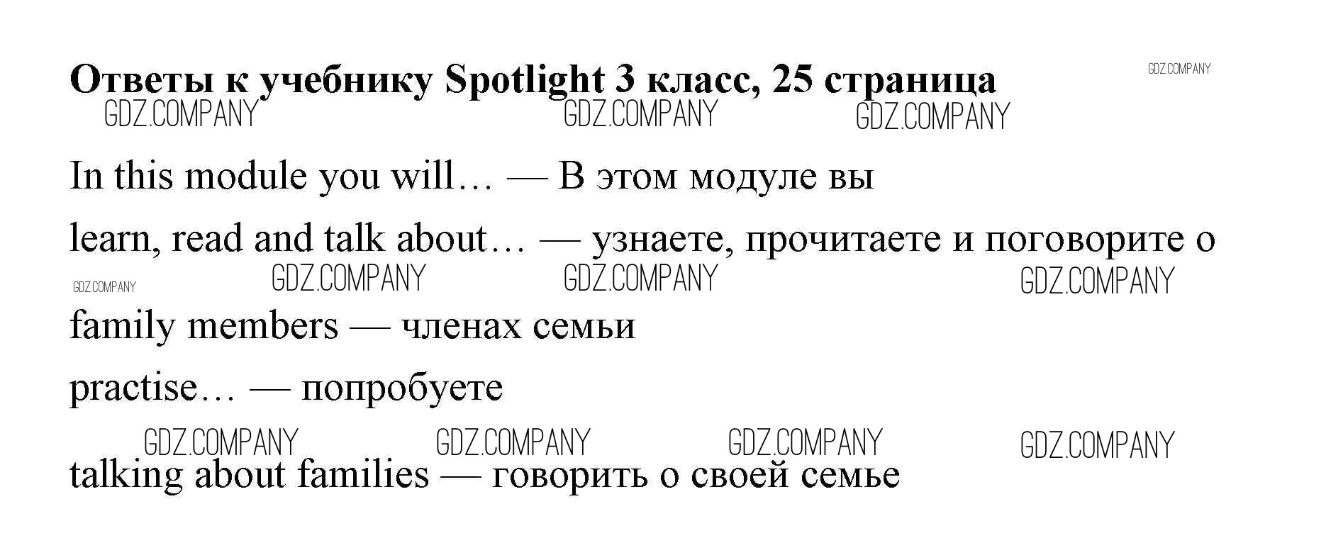 Здесь готовые ответы по Английскому языку за 3 (третий) класс от Быкова, Эванс, Дули, Поспелова Учебник Spotlight (издательство: Просвещение от 2015 г.) № 25