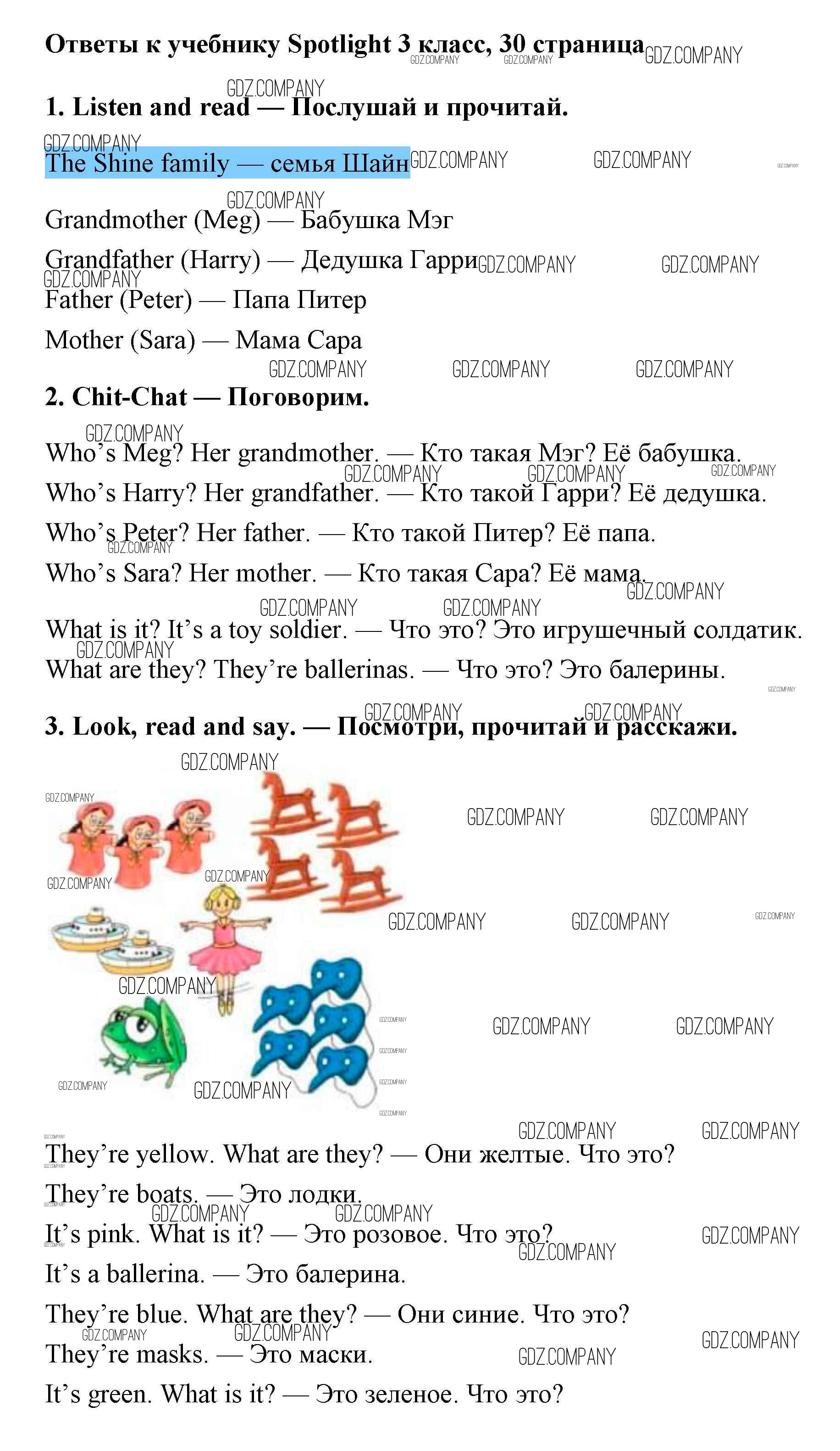 Здесь готовые ответы по Английскому языку за 3 (третий) класс от Быкова, Эванс, Дули, Поспелова Учебник Spotlight (издательство: Просвещение от 2015 г.) № 30