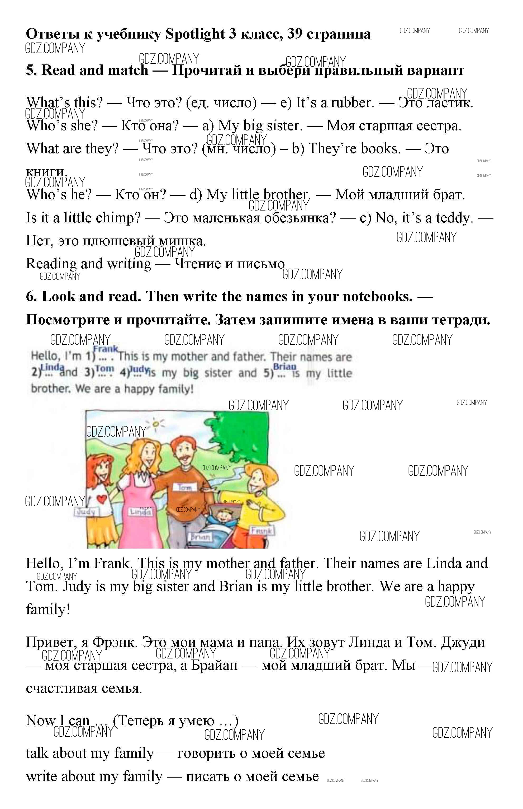 Здесь готовые ответы по Английскому языку за 3 (третий) класс от Быкова, Эванс, Дули, Поспелова Учебник Spotlight (издательство: Просвещение от 2015 г.) № 39