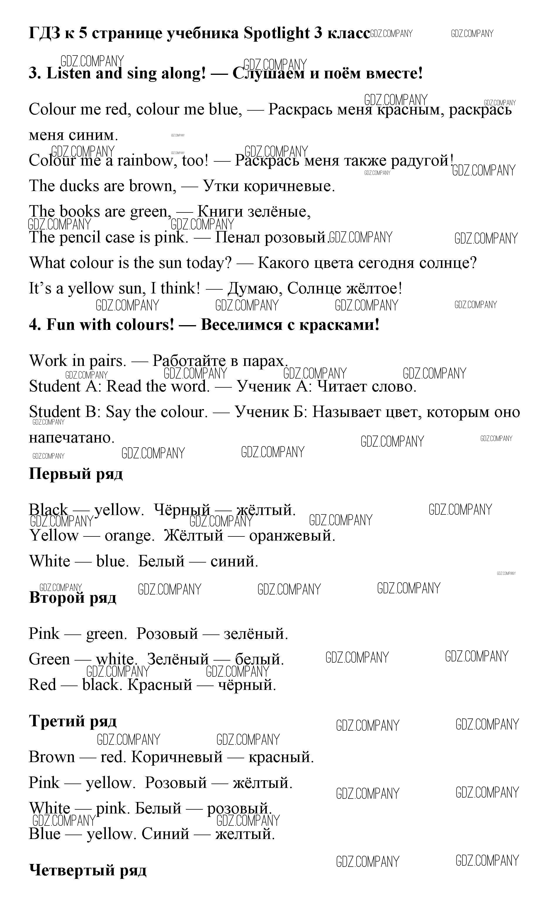 Здесь готовые ответы по Английскому языку за 3 (третий) класс от Быкова, Эванс, Дули, Поспелова Учебник Spotlight (издательство: Просвещение от 2015 г.) № 5