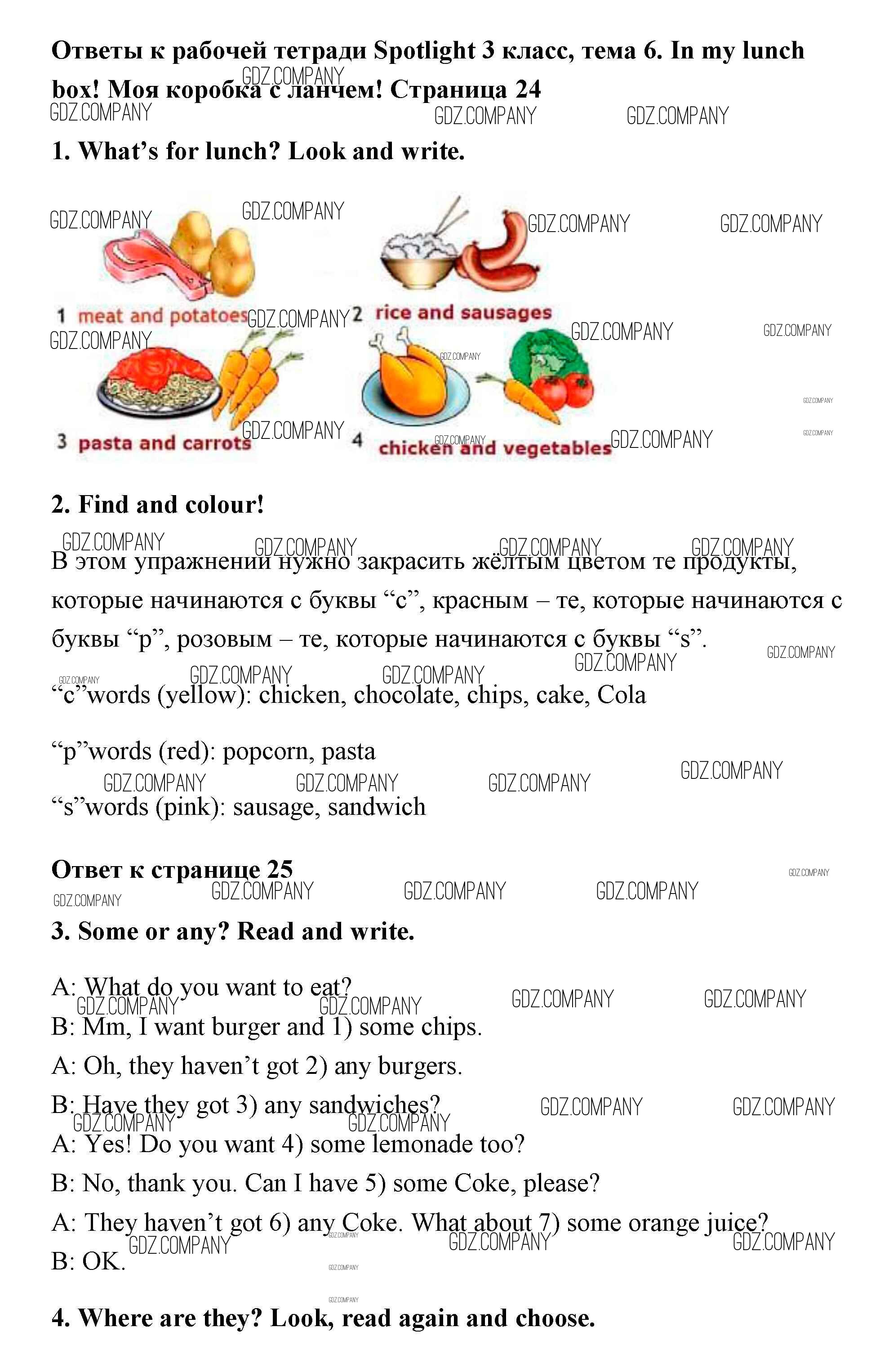 Здесь готовые ответы по Английскому языку за 3 (третий) класс от Быкова, Эванс, Дули, Поспелова Рабочая тетрадь Spotlight (издательство: Просвещение от 2016 г.) № 24-25