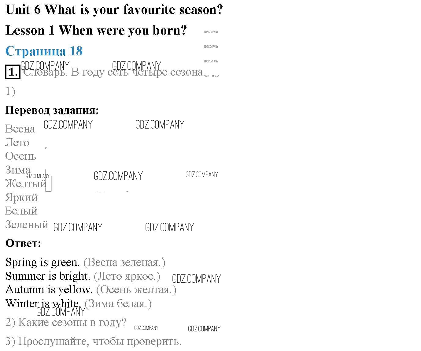 unit 6. What is your favourite season? (lesson) / lesson 1 (страницы 18 – 20)