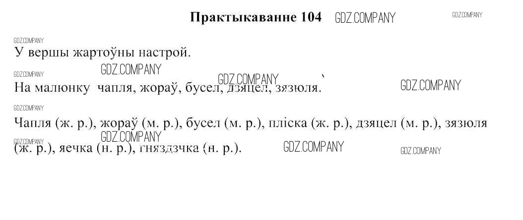 Здесь готовые ответы по Белорусскому языку за 3 (третий) класс от Свірыдзенка Учебник (издательство: Национальный институт образования от 2017 г.) № 104