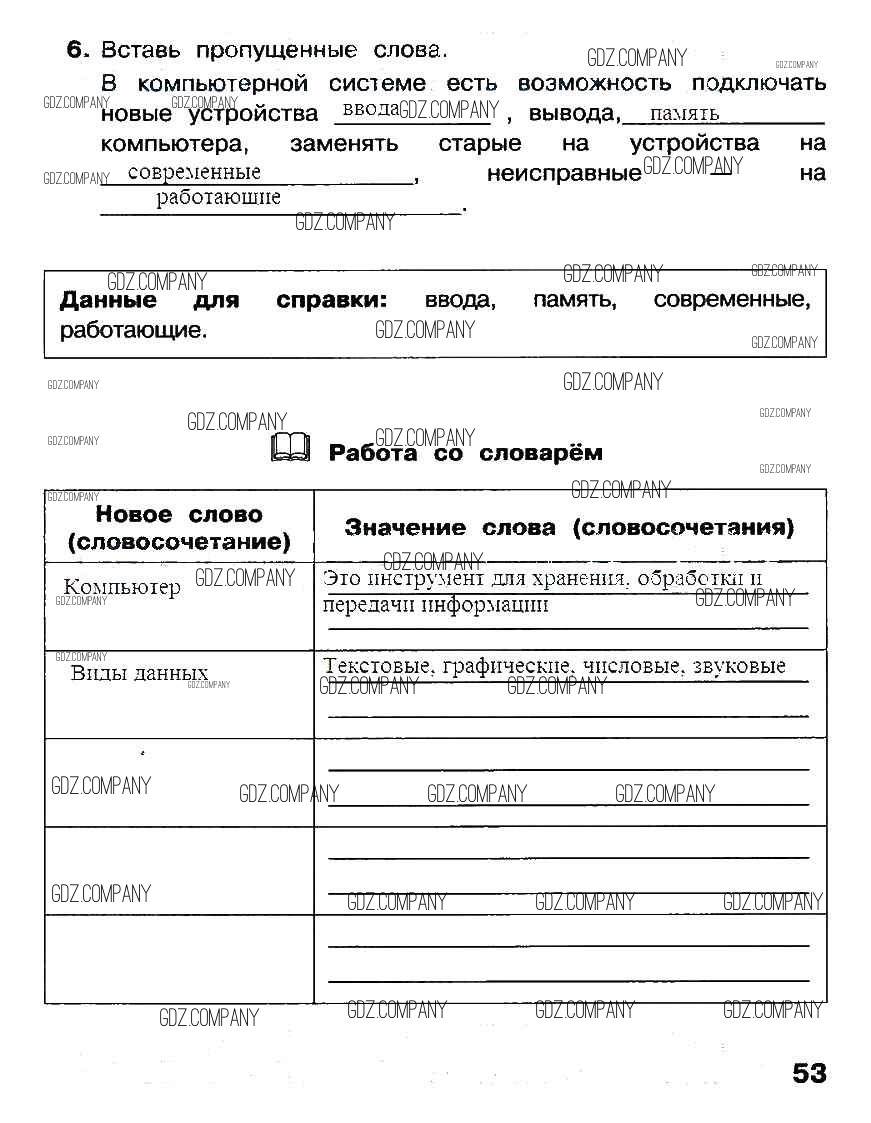 Здесь готовые ответы по Информатике за 3 (третий) класс от Матвеева, Челак, Конопатова, Панкратова, Нурова Рабочая тетрадь (издательство: Бином от 2017 г.) № 53