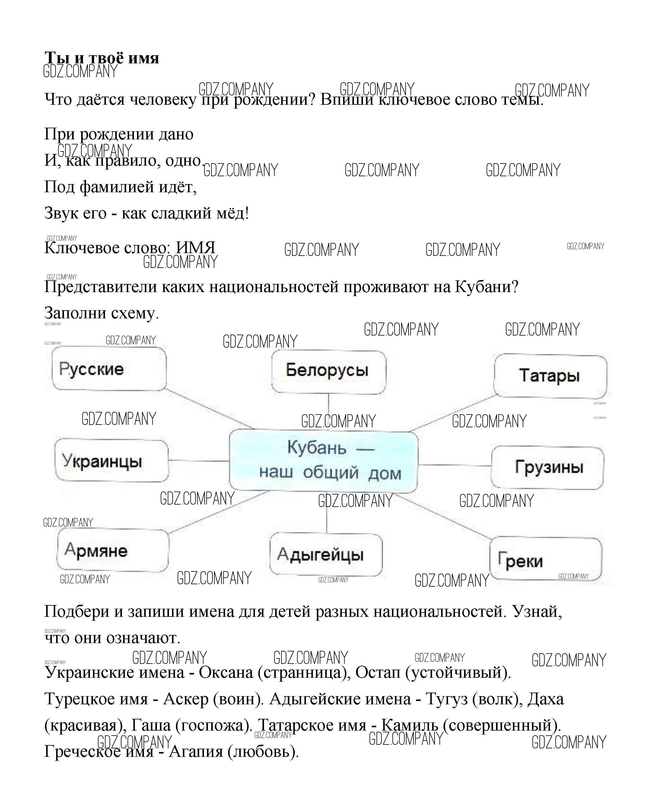 Здесь готовые ответы по Кубановедению за 3 (третий) класс от Науменко Рабочая тетрадь (издательство: Перспективы образования от 2017 г.) № Ты и твое имя
