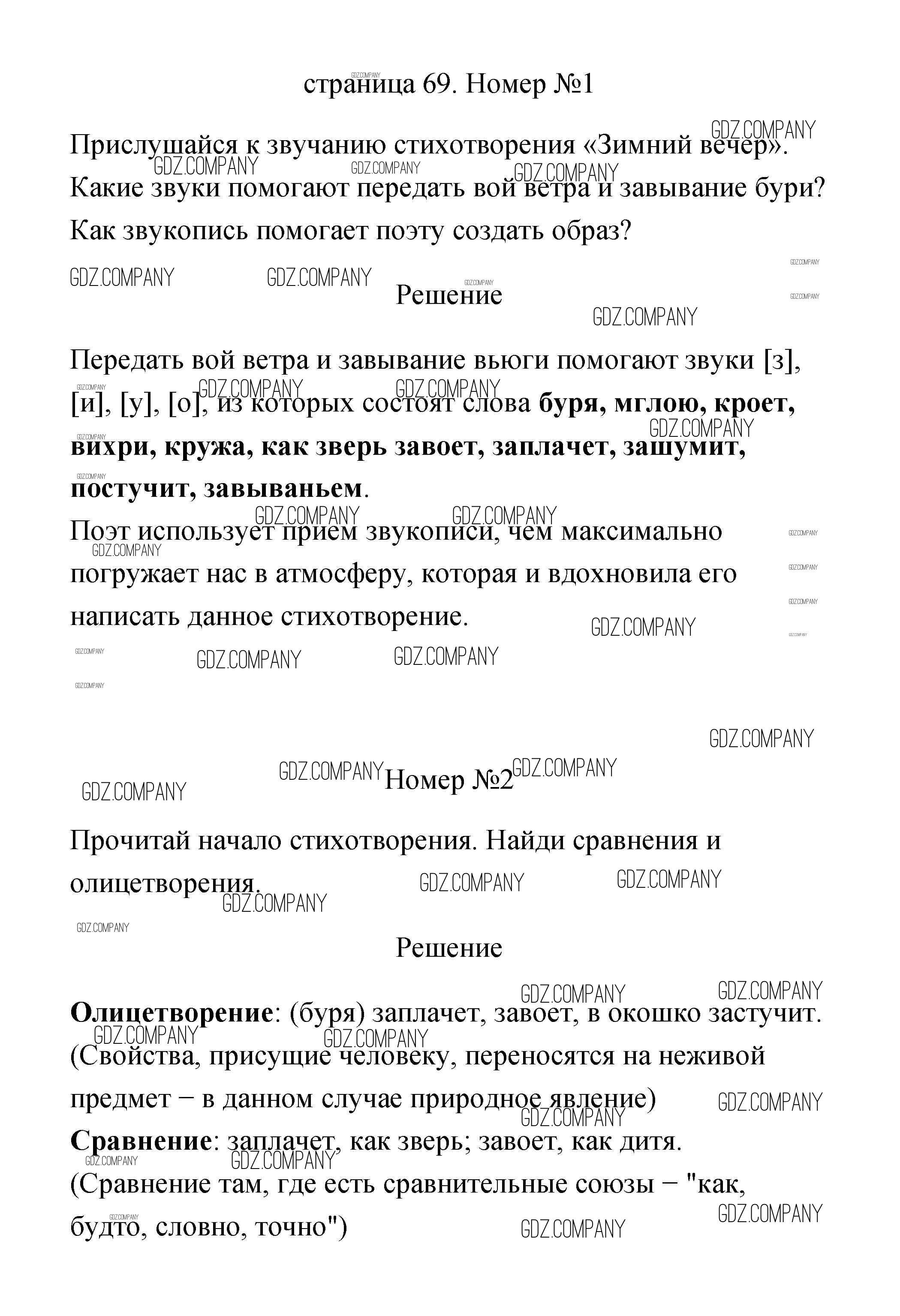 Здесь готовые ответы по Литературе за 3 (третий) класс от Климанова, Горецкий Учебник Школа России  (издательство: Просвещение от 2020 г.) № 69
